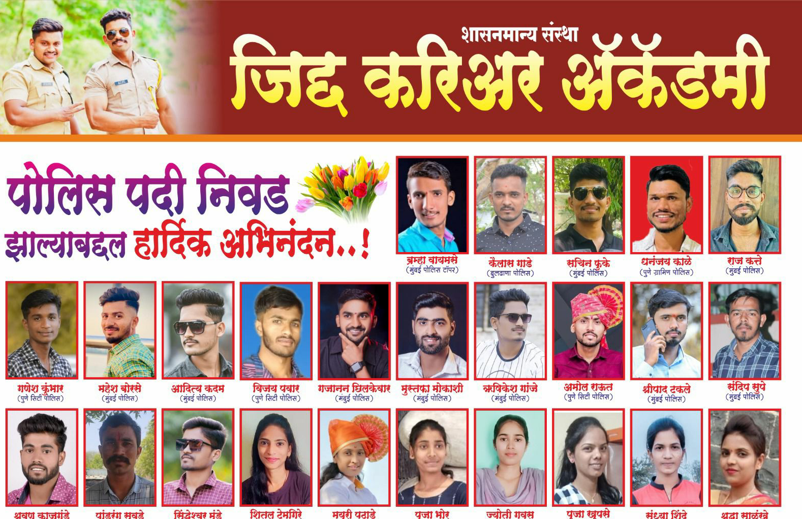 2023 च्या पोलीस भरतीमध्ये सिद्ध करण्यामधील यशस्वी विद्यार्थी कायम एक वर्ष तयारी करून महाराष्ट्र पोलीस भरती मध्ये आपले नाव चांगल्या मार्क्सने मिळविले